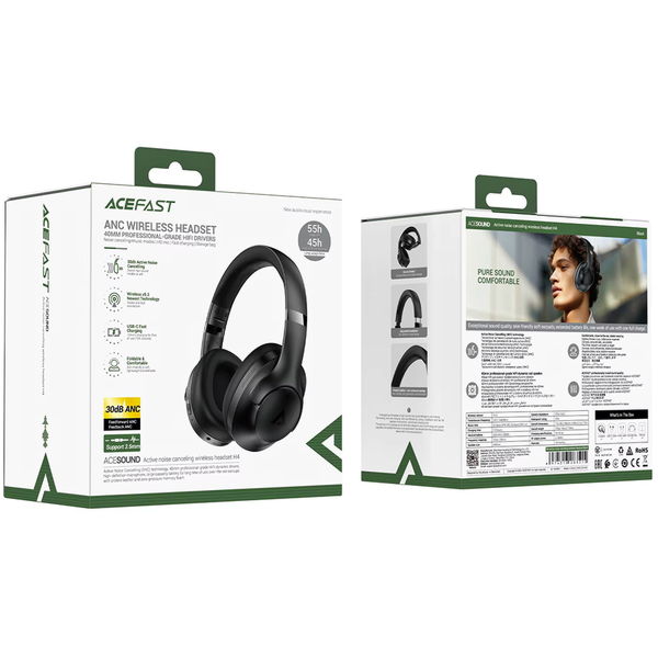 Acefast - Wireless Headset (H4) - Type-C, Bluetooth 5.3, Active Noise Canceling, IPX4, 500mAh, Hi-Fi Sound - Black Universal