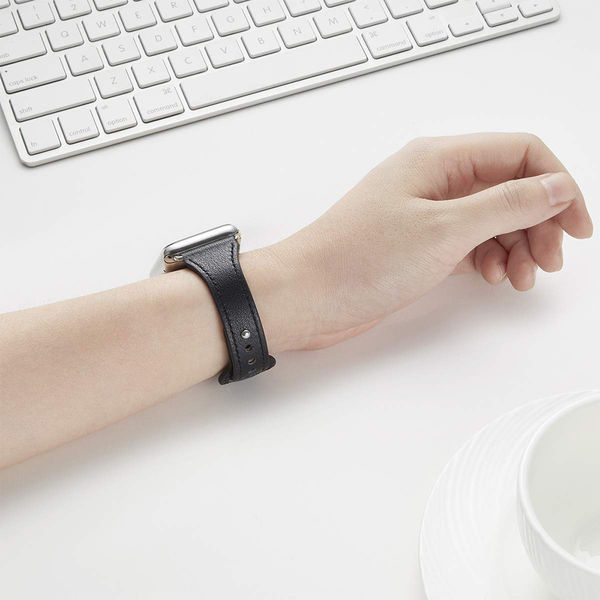 Techsuit - Watchband (W033) for WOMEN - Apple Watch 1/2/3/4/5/6/7/8/9/SE/SE 2/Ultra/Ultra 2 (42/44/45/49mm) - Black Apple Watch