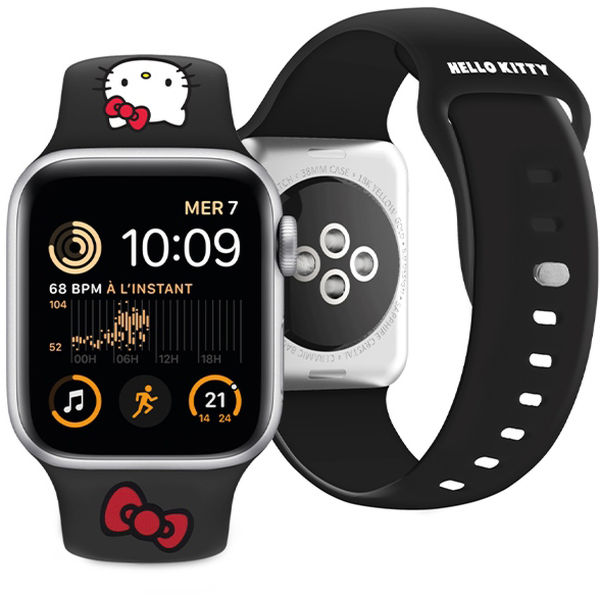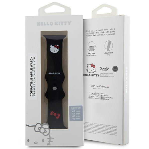 Hello Kitty - Strap Silicone (HKAWLSCHBLK) - Apple Watch 1/2/3/4/5/6/7/8/9/10/SE/SE 2/Ultra/Ultra 2 (42/44/45/46/49mm) - Black Apple