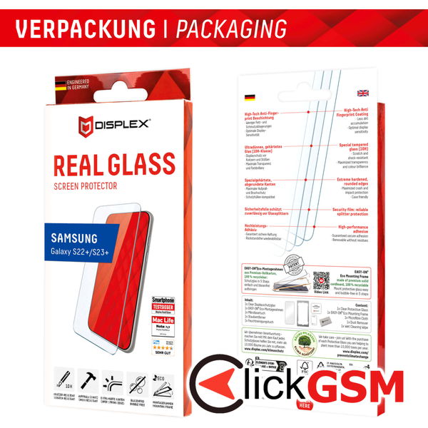 Displex - Premium Real Glass 2D - Samsung Galaxy S22 Plus 5G / S23 Plus - Clear Samsung Galaxy S22+