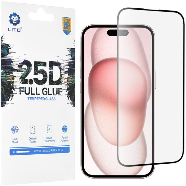 Lito - 2.5D FullGlue Glass - iPhone 15 - Black Apple iPhone 15