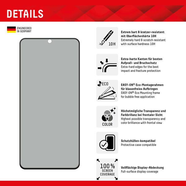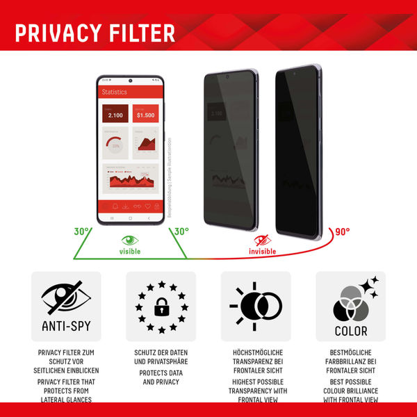 Displex - Premium Real Glass Privacy Full Cover - Samsung Galaxy S22 5G / S23 - Black Samsung Galaxy S22