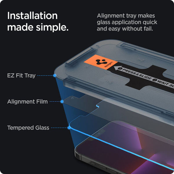 Spigen - Glas.tR EZ-FIT (2 pack) - iPhone 13 / 13 Pro / 14 - Clear Apple iPhone 13 Pro