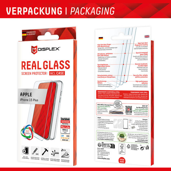 Displex - Premium [Pack] Real Glass + Case - iPhone 15 Plus - Clear Apple iPhone 15 Plus