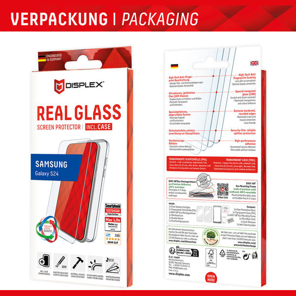 Displex - Premium [Pack] Real Glass + Case - Samsung Galaxy S24 - Clear Samsung Galaxy S24