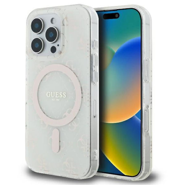 Accesoriu Guess - IML 4G Background MagSafe (GUHMP16XH4DTEH) - iPhone 16 Pro Max - White pentru Apple iPhone 16 Pro Max