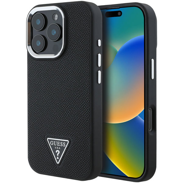 Guess - Grained Triangle MagSafe (GUHMP16LPGTSPSK) - iPhone 16 Pro - Black Apple iPhone 16 Pro
