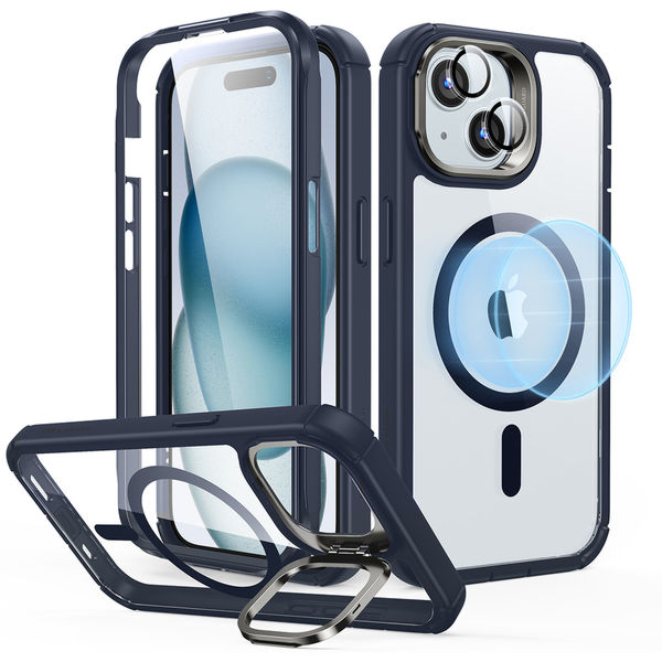 ESR - Armor Tough Kickstand HaloLock + Screen Protector - iPhone 15 Plus - Clear Dark Blue Apple iPhone 15 Plus