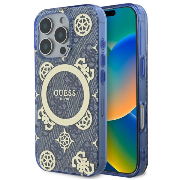 Guess - IML Peony On 4G Background MagSafe (GUHMP16LH4PYEEB) - iPhone 16 Pro - Blue Apple iPhone 16 Pro