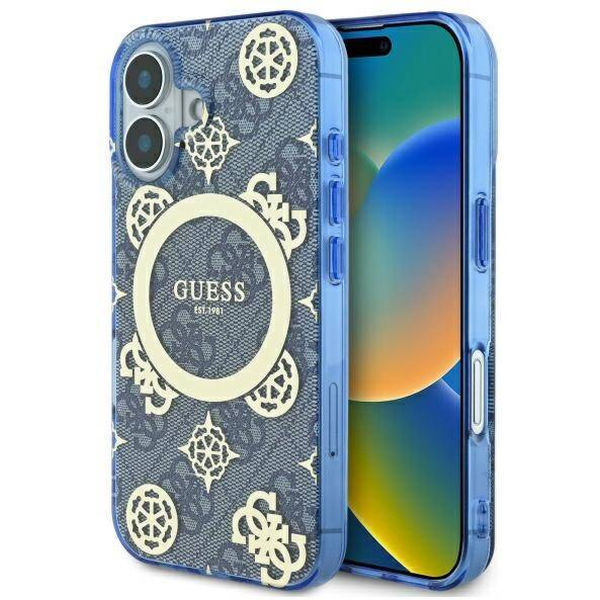Guess - IML Peony On 4G Background MagSafe (GUHMP16SH4PYEEB) - iPhone 16 - Blue Apple iPhone 16