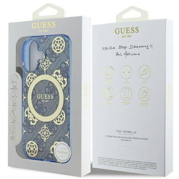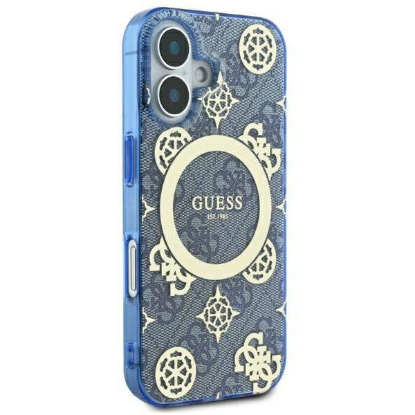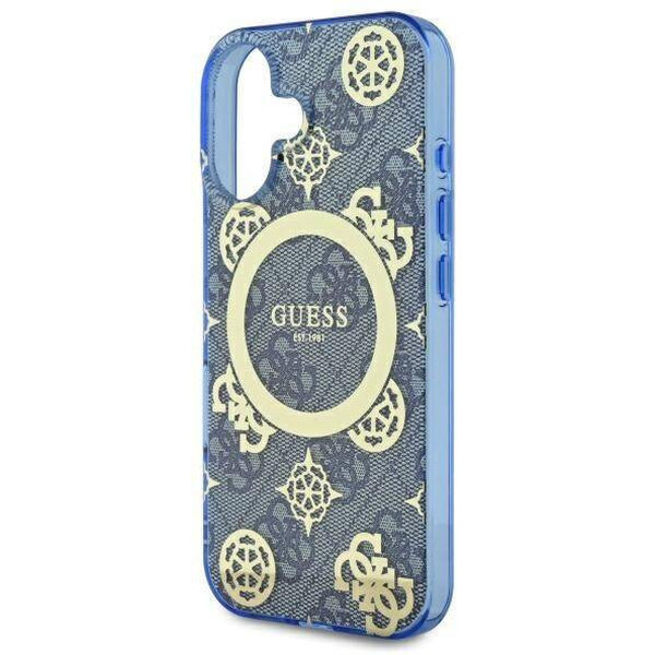 Accesoriu Guess - IML Peony On 4G Background MagSafe (GUHMP16SH4PYEEB) - iPhone 16 - Blue pentru Apple iPhone 16