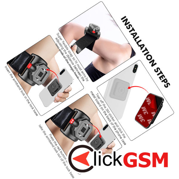 Techsuit - Sports Armband with Phone Locker (TSA1) - Velcro Mounting Strap, Quick Button Release, 3M Glue, max 6.8" - Black Universal