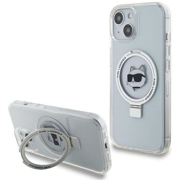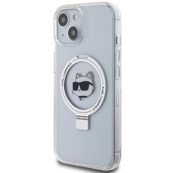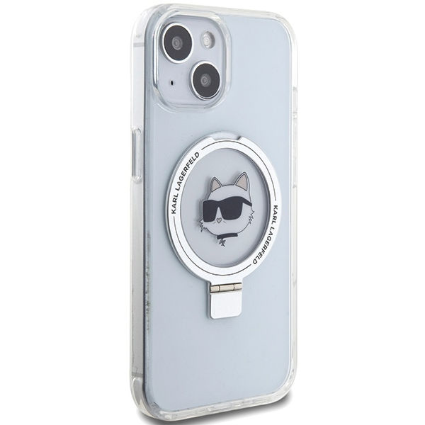 Karl Lagerfeld - Hardcase Ring Stand MagSafe (KLHMP15MHMRSCHH) - iPhone 15 Plus - White Choupette Head Apple iPhone 14 Plus