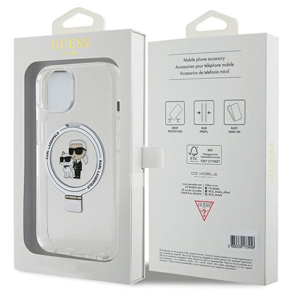 Karl Lagerfeld - Hardcase Ring Stand MagSafe (KLHMP14SHMRSKCH) - iPhone 14 - White Karl&Choupette Apple iPhone 14