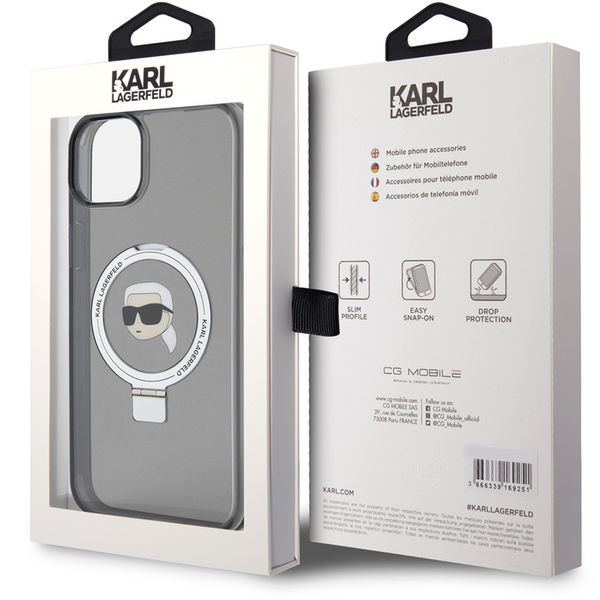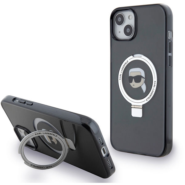 Karl Lagerfeld - Hardcase Ring Stand MagSafe (KLHMP15MHMRSKHK) - iPhone 15 Plus - Karl Head Apple iPhone 15 Plus