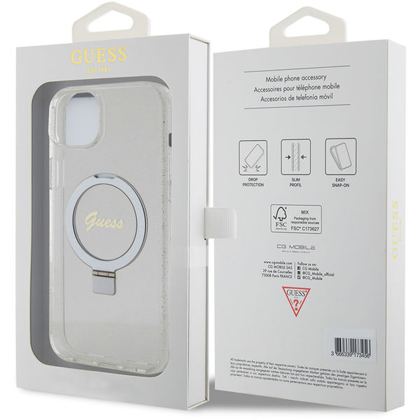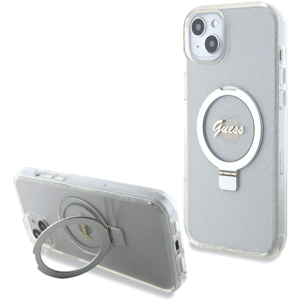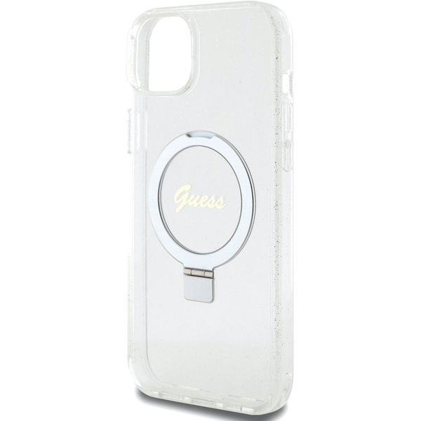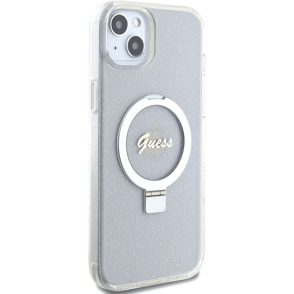 Guess - Ring Stand Script Glitter MagSafe (GUHMP15MHRSGSD) - iPhone 15 Plus - Clear Apple iPhone 15 Plus