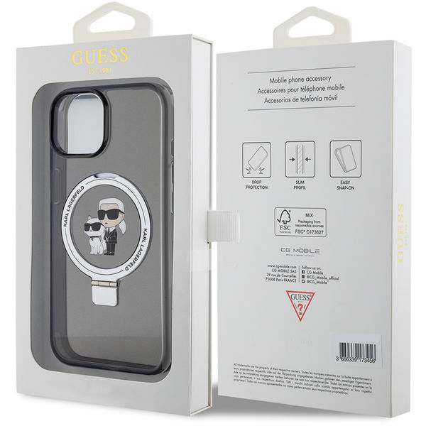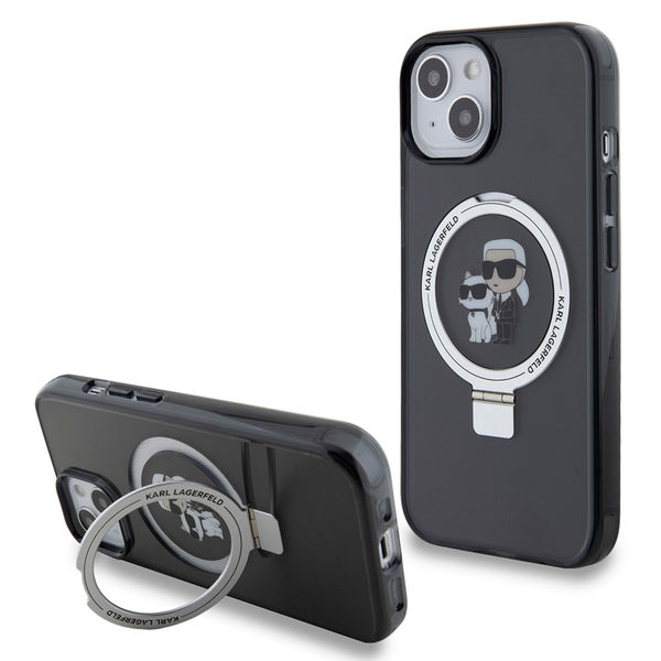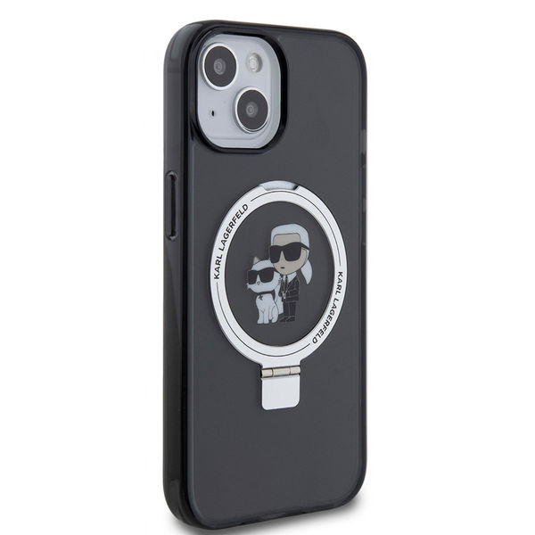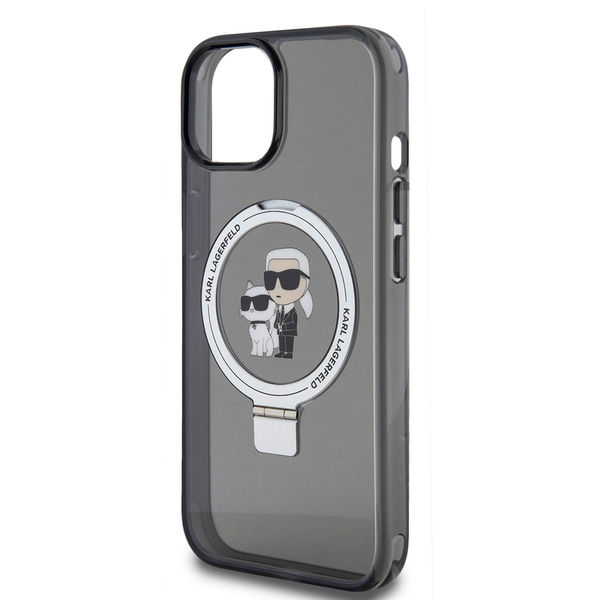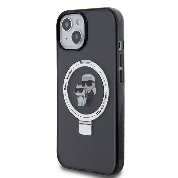 Karl Lagerfeld - Hardcase Ring Stand MagSafe (KLHMP15SHMRSKCK) - iPhone 15 - Karl&Choupette Apple iPhone 15