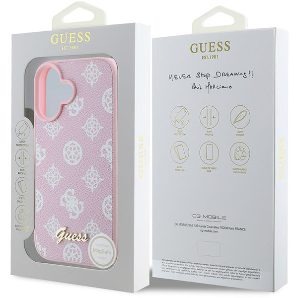 Accesoriu Guess - Peony Script MagSafe (GUHMP16MPGPYSP) - iPhone 16 Plus - Pink pentru Apple iPhone 16 Plus