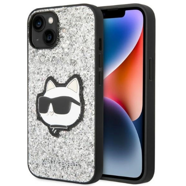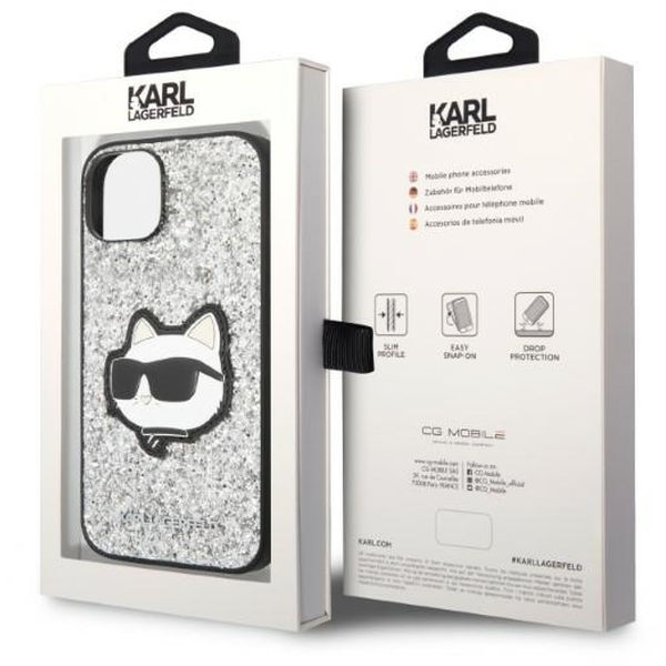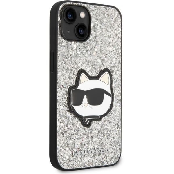 Alte variante pentru Karl Lagerfeld - Hardcase Glitter (KLHCP14MG2CPS) - iPhone 14 Plus - Silver Choupette Patch