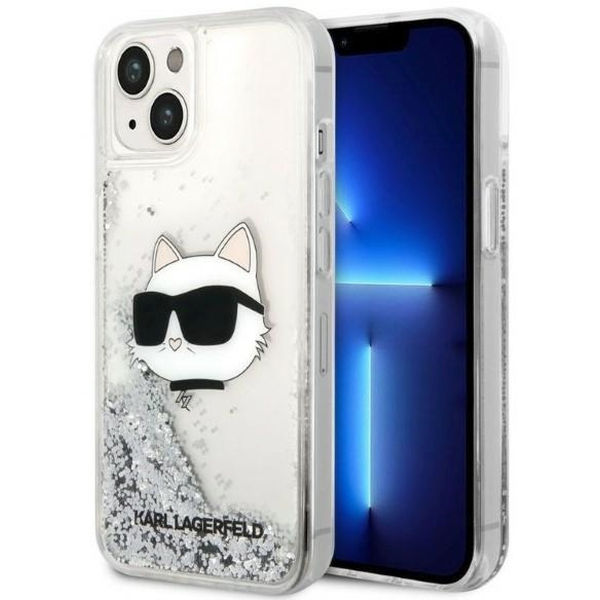 Karl Lagerfeld - Hardcase Glitter (KLHCP14MLNCHCS) - iPhone 14 Plus - Silver Choupette Head Apple iPhone 14 Plus