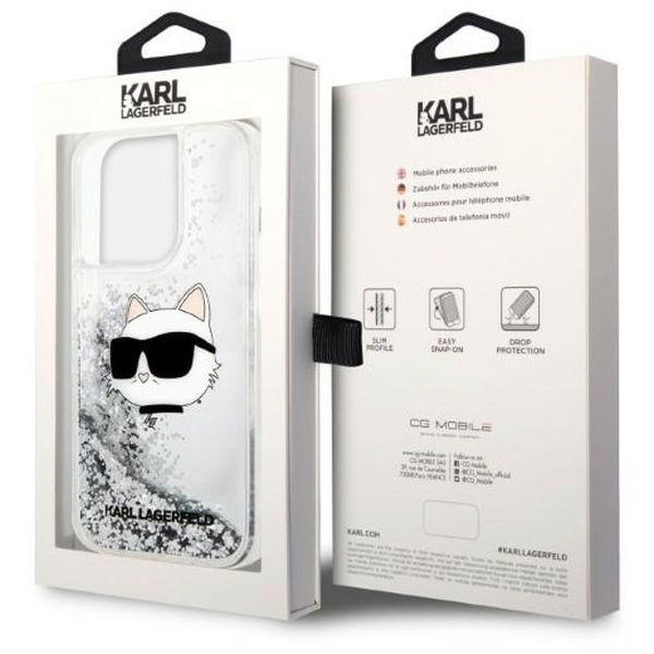 Karl Lagerfeld - Hardcase Glitter (KLHCP14XLNCHCS) - iPhone 14 Pro Max - Silver Choupette Head Apple iPhone 14 Pro Max