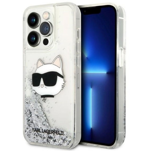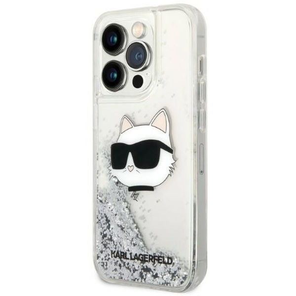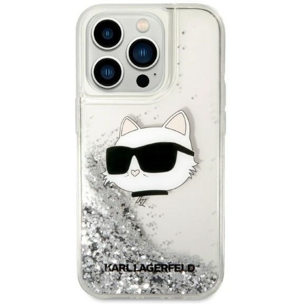 Karl Lagerfeld - Hardcase Glitter (KLHCP14LLNCHCS) - iPhone 14 Pro - Silver Choupette Head Apple iPhone 14 Pro