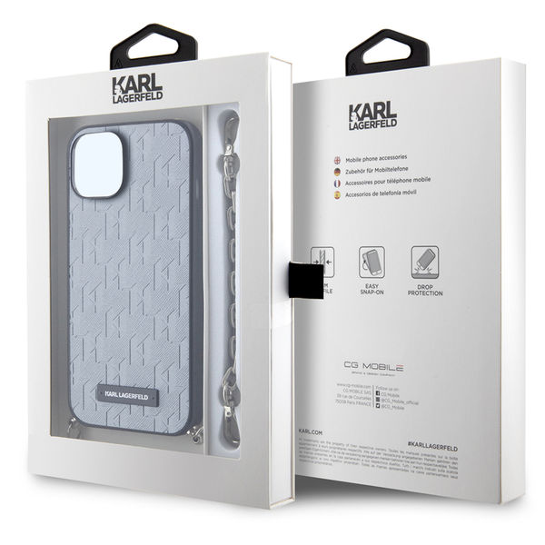 Accesoriu Karl Lagerfeld - Saffiano Monogram Chain (KLHCP14SSACKLHPG) - iPhone 14 - Silver pentru Apple iPhone 14