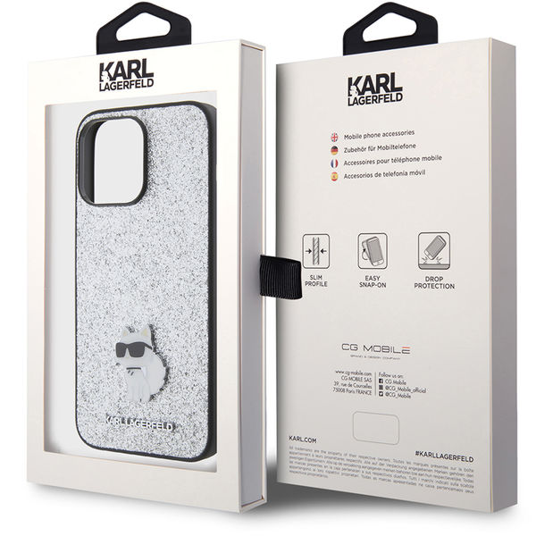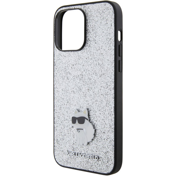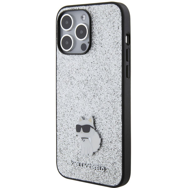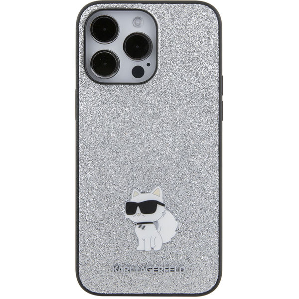 Alte variante pentru Karl Lagerfeld - Hardcase Glitter Fixed (KLHCP15XGCNPSG) - iPhone 15 Pro Max - Silver Choupette Logo