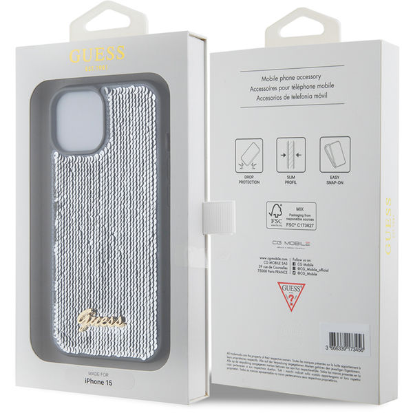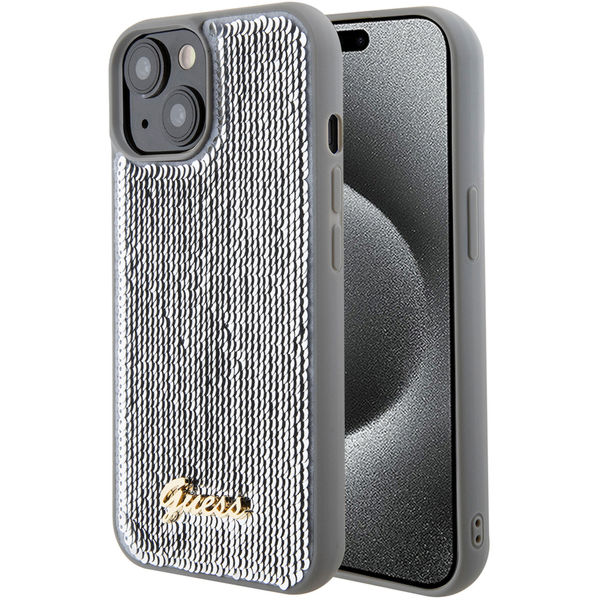 Accesoriu Guess - Sequin Script Metal (GUHCP15SPSFDGSS) - iPhone 15 - Silver pentru Apple iPhone 15