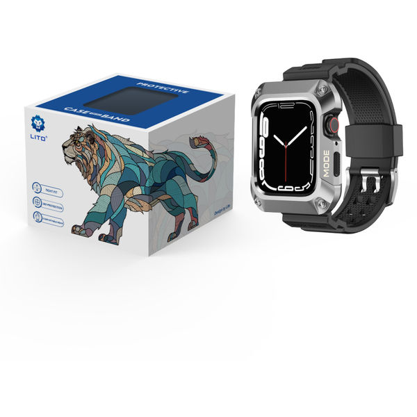 Accesoriu Lito - [Box] Metal RuggedArmor Case + Watchband (LS002) - Apple Watch 7 / 8 / 9 (45mm) - Silver pentru Apple Watch