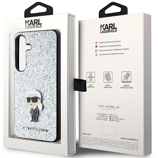 Accesoriu Karl Lagerfeld - Hardcase Glitter Fixed (KLHCS24MGCNPSG) - Samsung Galaxy S24 Plus - Silver Ikonik Logo pentru Samsung Galaxy S24+