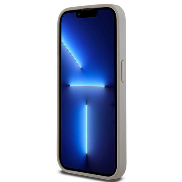 DKNY - Leather Mono Stripe & Metal Logo (DKHCP15LPRTHSLE) - iPhone 15 Pro - Beige Apple iPhone 15 Pro