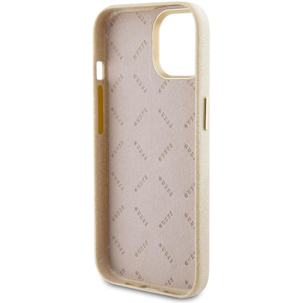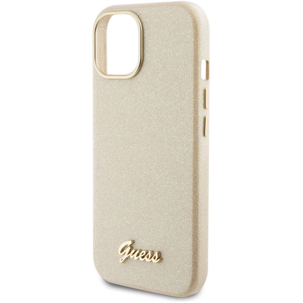 Accesoriu Guess - Glitter Glossy Script (GUHCP15SPGMCSD) - iPhone 15 - Sparkle Beige pentru Apple iPhone 15