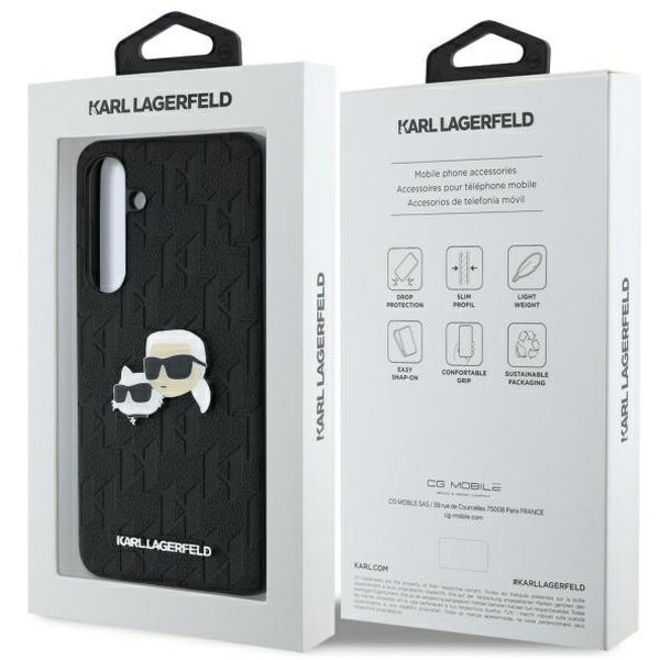 Accesoriu Karl Lagerfeld - Hardcase Leather (KLHCS24FEPGKLKCPK) - Samsung Galaxy S24 FE - Monogram Karl&Chaoupette Head Pin pentru Samsung Galaxy S24 FE