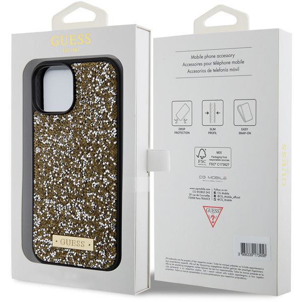 Accesoriu Guess - Rhinestone Metal Logo (GUHCP15SPFGSBSD) - iPhone 15 - Yellow pentru Apple iPhone 15