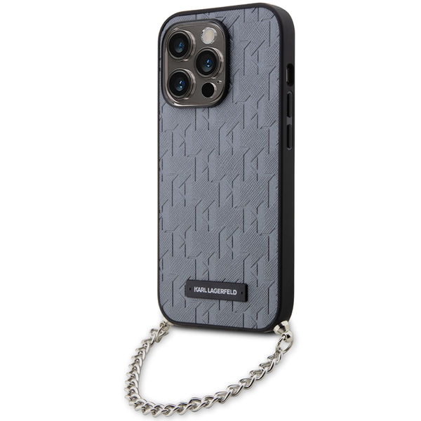 Karl Lagerfeld - Saffiano Monogram Chain (KLHCP14LSACKLHPG) - iPhone 14 Pro - Silver Apple iPhone 14 Pro