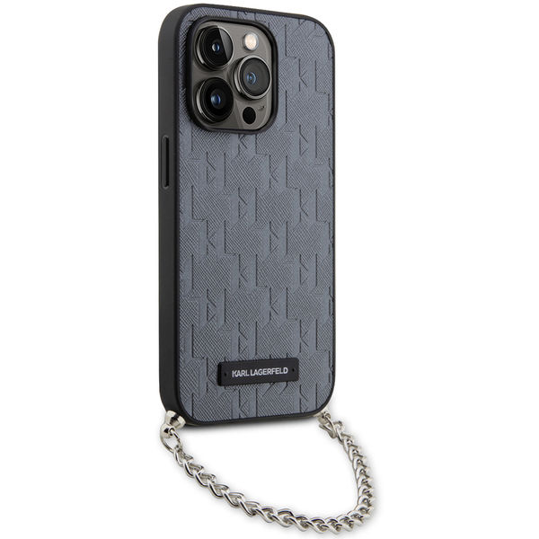 Accesoriu Karl Lagerfeld - Saffiano Monogram Chain (KLHCP14LSACKLHPG) - iPhone 14 Pro - Silver pentru Apple iPhone 14 Pro
