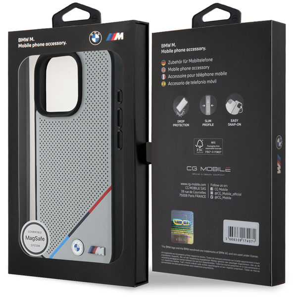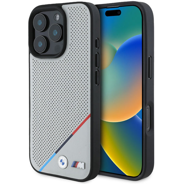 BMW - Hardcase M Perforated Tricolor Line MagSafe (BMHMP16L23PUPDG) - iPhone 16 Pro - Grey Apple iPhone 16 Pro