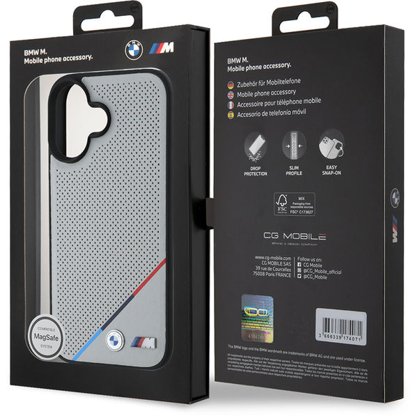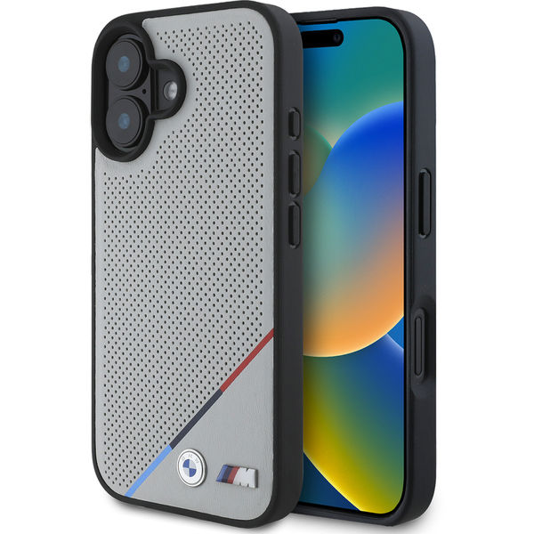 BMW - Hardcase M Perforated Tricolor Line MagSafe (BMHMP16S23PUPDG) - iPhone 16 - Grey Apple iPhone 16