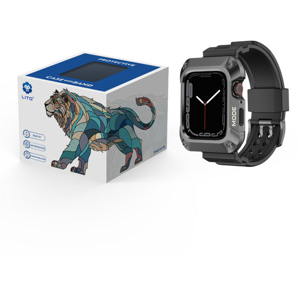 Accesoriu Lito - [Box] Metal RuggedArmor Case + Watchband (LS002) - Apple Watch 7 / 8 / 9 (45mm) - Grey pentru Apple Watch