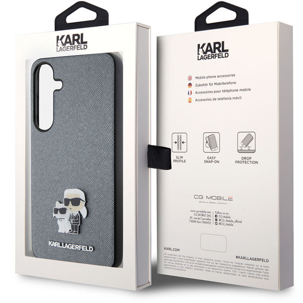 Karl Lagerfeld - Saffiano (KLHCS24MPSAKCMPG) - Samsung Galaxy S24 Plus - Grey Karl&Choupette Metal Pin Samsung Galaxy S24+