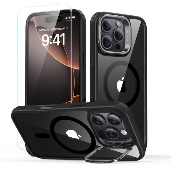 ESR - Classic Hybrid HaloLock Kickstand + Tempered Glass - iPhone 16 Pro Max - Clear Black Apple iPhone 16 Pro Max