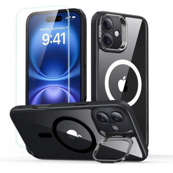ESR - Classic Hybrid HaloLock Kickstand + Tempered Glass - iPhone 16 - Clear Black Apple iPhone 16