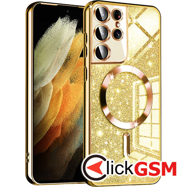 Accesoriu Techsuit - Luxury Glitter MagSafe - Samsung Galaxy S21 Ultra 5G - Gold pentru Samsung Galaxy S21 Ultra 5G