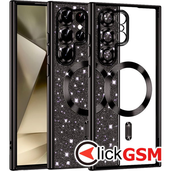 Accesoriu Techsuit - Luxury Glitter MagSafe - Samsung Galaxy S22 Ultra 5G - Black pentru Samsung Galaxy S22 Ultra