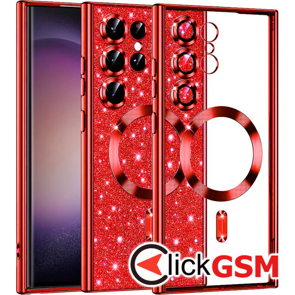 Accesoriu Techsuit - Luxury Glitter MagSafe - Samsung Galaxy S23 Ultra - Red pentru Samsung Galaxy S23 Ultra