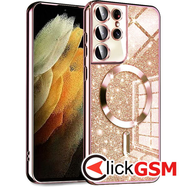 Accesoriu Techsuit - Luxury Glitter MagSafe - Samsung Galaxy S21 Ultra 5G - Rose Gold pentru Samsung Galaxy S21 Ultra 5G