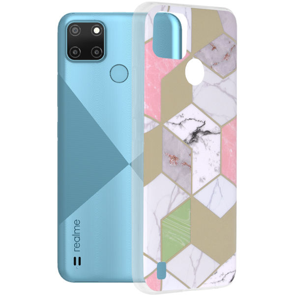 Accesoriu Techsuit - Marble Series - Realme C21Y / C25Y - Purple Hex pentru Realme C21Y