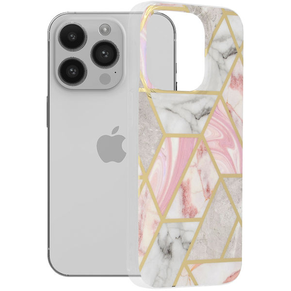 Accesoriu Techsuit - Marble Series - iPhone 14 Pro - Pink Hex pentru Apple iPhone 14 Pro