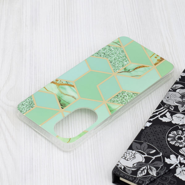 Accesoriu Techsuit - Marble Series - Oppo A78 4G - Green Hex pentru Oppo A78 4G